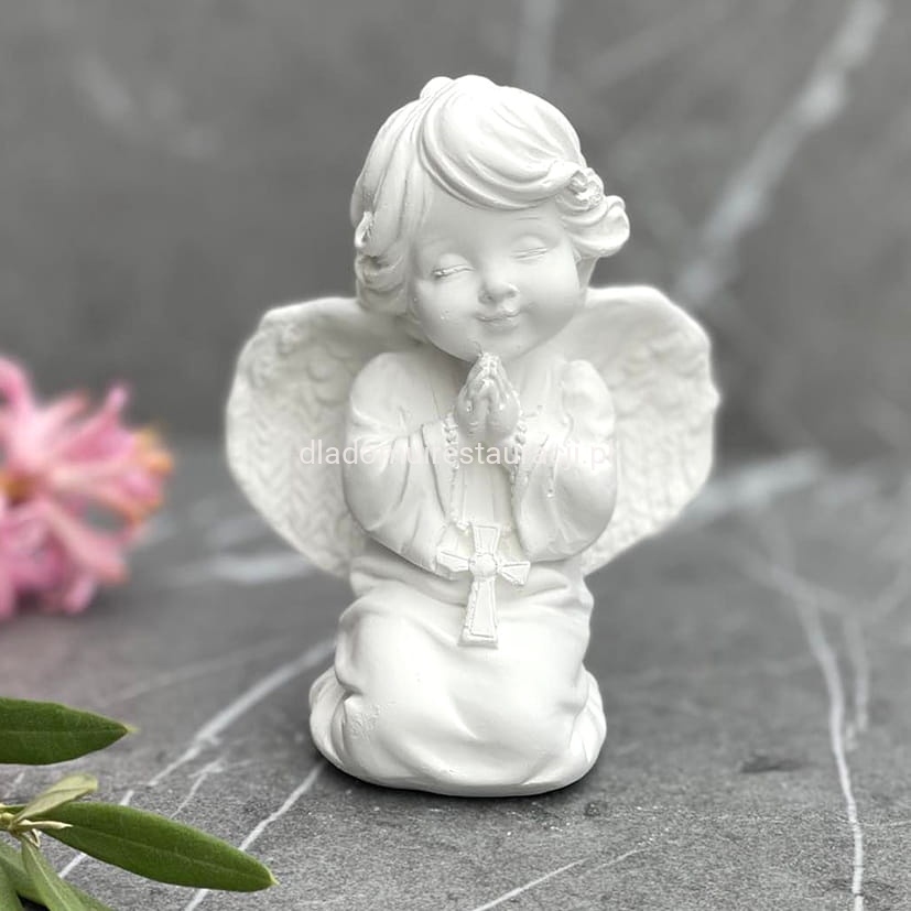 Aniołek Klęczący z Krzyżykiem Figurka Komunijna Biały 12cm