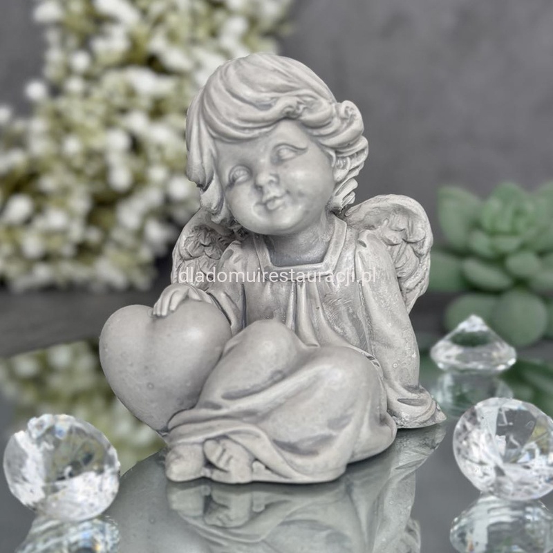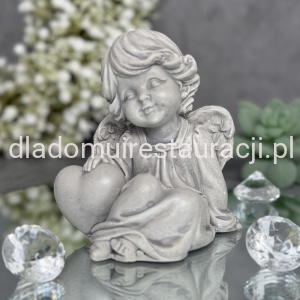 Aniołek Siedzący z Sercem Figurka Komunijna Szary 12cm x 12 cm