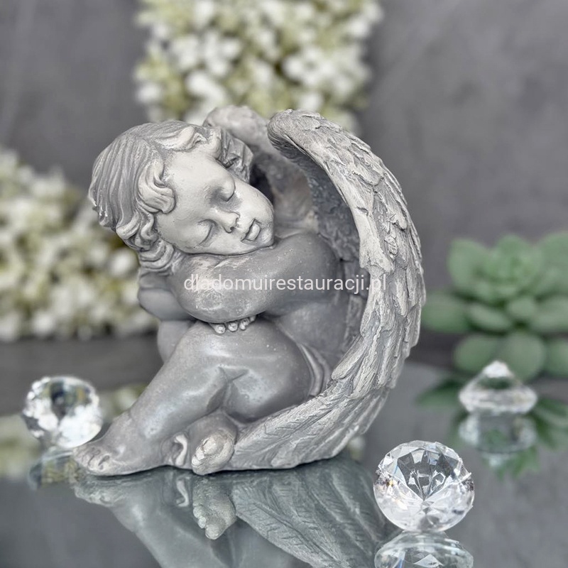 Aniołek Śpiący Figurka Komunijna Szary 12cm x 12 cm