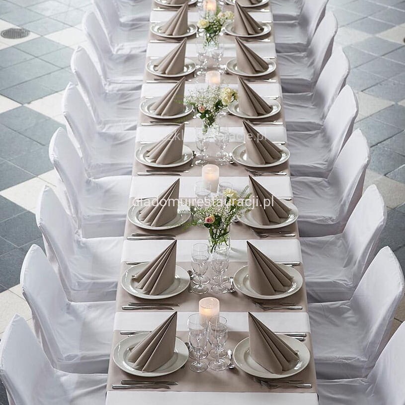 Bieżnik Evolin to dobry wybór dla właścicieli lokali gastronomicznych, którzy szukają eleganckiego, ale praktycznego rozwiązania do codziennego nakrycia stołu. Sprawdza się zarówno podczas kameralnych spotkań, jak i większych wydarzeń – wszędzie tam, gdzie liczy się estetyka i wygoda użytkowania.
