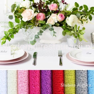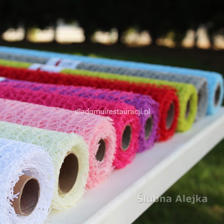 Bieżnik siatka florystyczna, który będzie zarówno dekoracyjnym, jak i praktycznym dodatkiem, jest pod wieloma względami dekoracją elastyczną. Ze względu na duży wybór kolorystyczny można ją dopasować do każdej wybranej aranżacji. Łatwo rozwija się ją z rolki i łatwo przechowuje po przyjęciu.