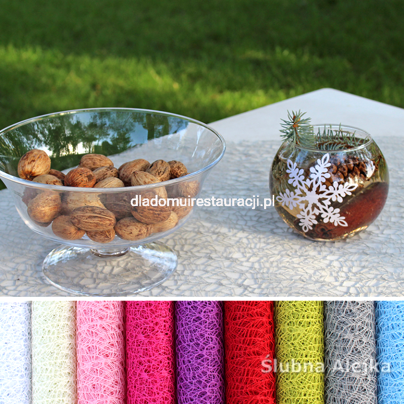 Bieżnik siatka florystyczna to tradycyjnych rozmiarów dodatek dekoracyjny na stoły restauracyjne, ale nie tylko. Samo uzupełnienie aranżacji w dowolnej kolorystyce nie jest jedyną zaletą tego bieżnika. Chroni on również stół i obrus przed zabrudzeniami, które często, przy organizacji dużych uroczystości, powodują trwałe przebarwienia.