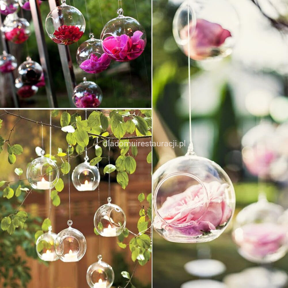 Wnętrze bombki można wypełnić dowolną kompozycją: elementami roślinnymi, sztucznymi dekoracjami lub dodatkami sezonowymi (np. świątecznymi). Dzięki dużemu otworowi aranżacja jest łatwa w przygotowaniu i wymianie.