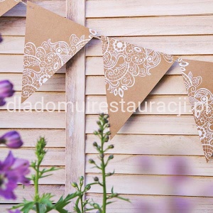 Girlanda Flagietki Kraft 2,15m to uniwersalna ozdoba w stylu rustykalnym, która doskonale sprawdzi się podczas wesel, przyjęć plenerowych, urodzin czy imprez rodzinnych. Wykonana z papieru kraft, wprowadza do aranżacji ciepły, naturalny klimat.