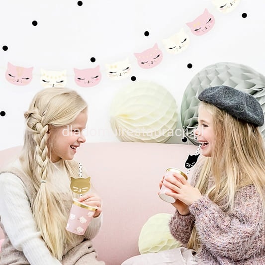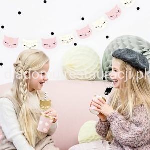 Girlanda Kotek Mix 1,4m to urocza dekoracja na przyjęcia urodzinowe i imprezy tematyczne dla dzieci. Wykonana w mixie wzorów i kolorów, świetnie ozdobi salę, ogród lub kącik ze słodkościami.