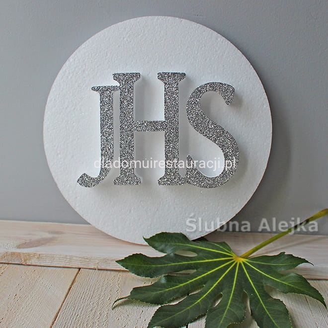 Dekoracje z wykorzystaniem hostii doskonale wpiszą się w klimat Pierwszej Komunii Świętej. Jest niezwykle lekka, dlatego można powiesić ją w dowolnym miejscu za pomocą żyłki, wstążki lub szpileczek. Świetnie sprawdzi się zarówno jako dekoracja centralna, jak i w kompozycji w Kościele oraz na przyjęciu komunijnym. Pokryty srebrnym brokatem napis IHS jest wielkości 11 cm, dlatego dekoracja powieszona nawet w odległym miejscu będzie dobrze widocznym elementem dekoracyjnym sali.