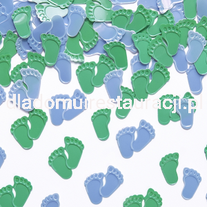 Śliczne konfetti w kształcie wózeczków do dekoracji stołów.