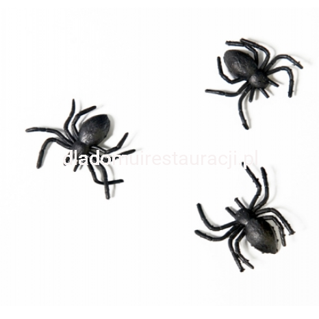 Czarne pająki wykonane z plastiku - idealne na Halloween, do dekoracji stołów i pajęczyn.
