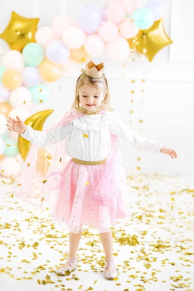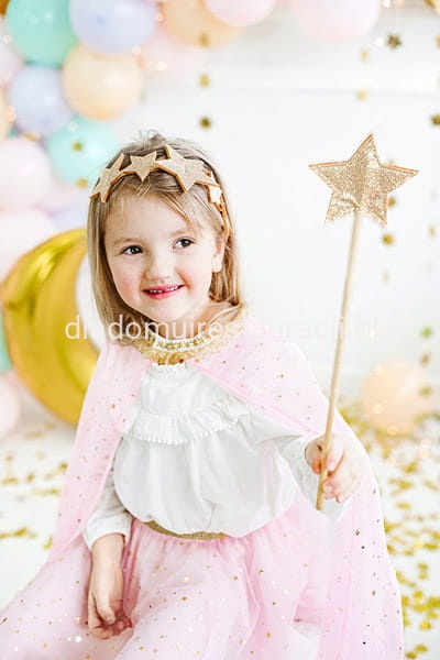 Jasnorózowa peleryna w złote wzory. Z pewnością dopełni całości przebrania na Halloween.