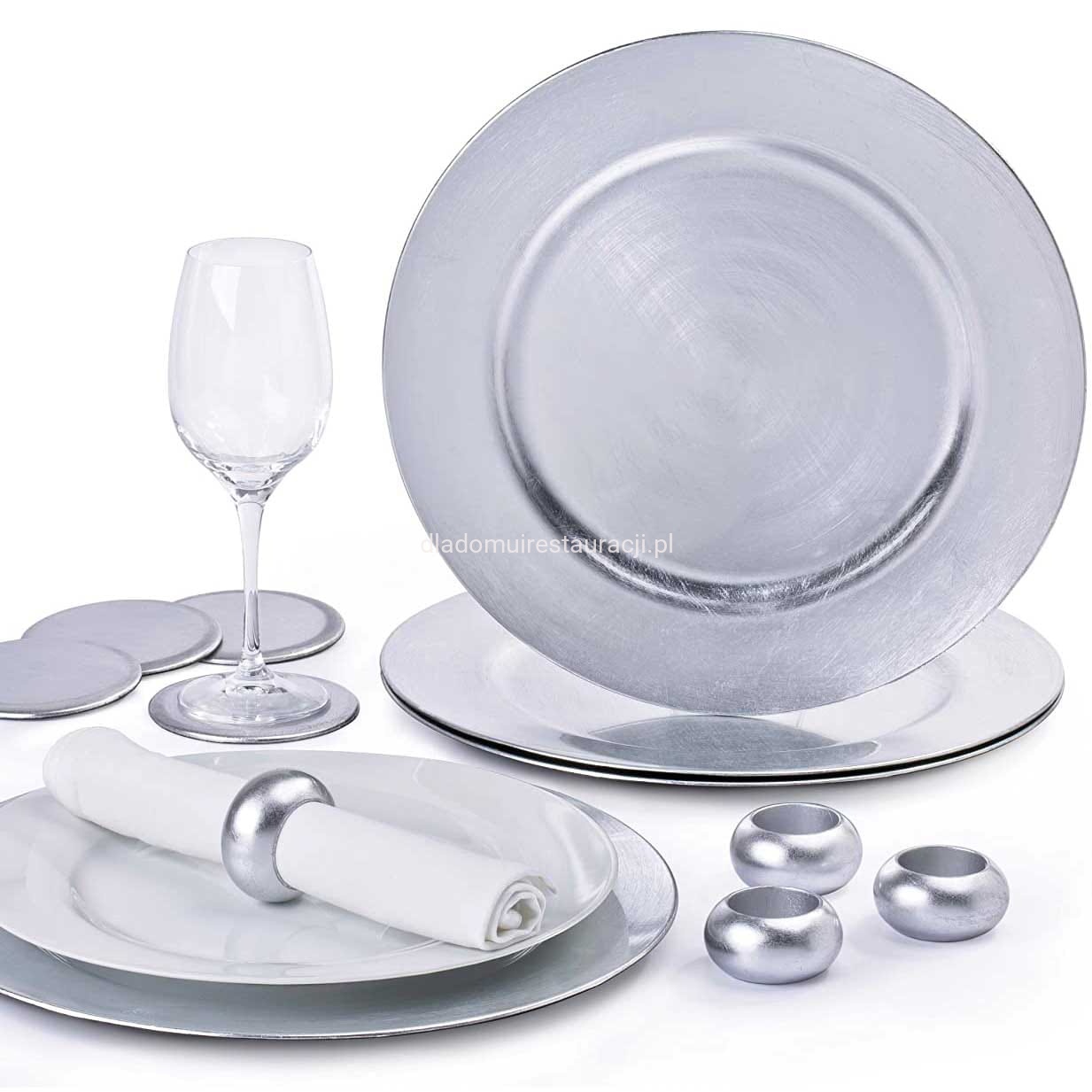 Podtalerz na Stół Gładki Srebrny Połysk ø33cm