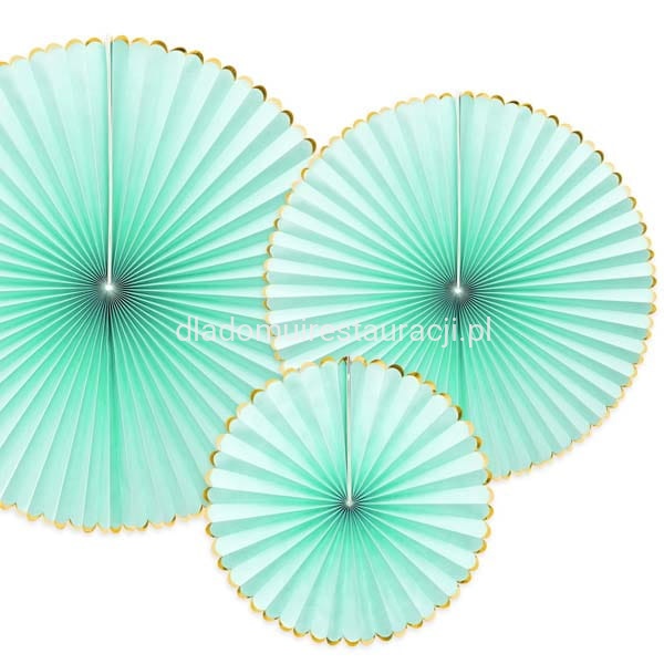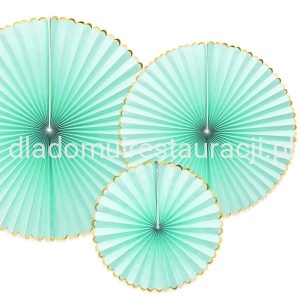 Rozety Dekoracyjne Yummy 3 szt. Miętowy to efektowna ozdoba, która doda uroku każdej aranżacji. Idealnie sprawdzą się podczas wesel, urodzin, komunii, baby shower czy przyjęć plenerowych. Dzięki lekkiej konstrukcji i prostemu montażowi są praktyczne i wygodne w użyciu.