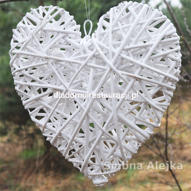 Serce z Wikliny Duże 35x35cm to stylowa i uniwersalna dekoracja, która doskonale sprawdzi się podczas ceremonii ślubnych i weselnych przyjęć. Dzięki dołączonej białej wstążce można je łatwo zawiesić w dowolnym miejscu, tworząc romantyczny klimat.