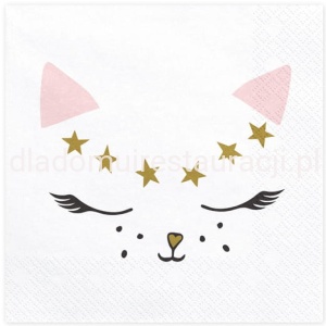Serwetki Urodzinowe Kotek 33x33cm to urocza dekoracja stołu, idealna na przyjęcia dla dzieci. Delikatny motyw kotka sprawia, że świetnie komponują się z innymi dodatkami w tym samym stylu, tworząc spójną aranżację.