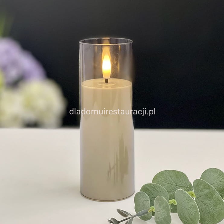 Świeca Ozdobna LED Bezpłomieniowa Ceremony swoim wyglądem niemal identycznie odwzorowuje tradycyjną świecę pieńkową w dymnym szkle. Posiada eleganckie wykończenie z tworzywa sztucznego i ciepły biały płomień, dzięki czemu doskonale sprawdza się w eleganckich aranżacjach stołów w restauracjach, hotelach, kawiarniach oraz w domu. Zasilana 2 bateriami AA, zachowuje żywotność nawet do 25 000 godzin, gwarantując długotrwały efekt świetlny bez ryzyka poparzenia czy zabrudzenia woskiem.