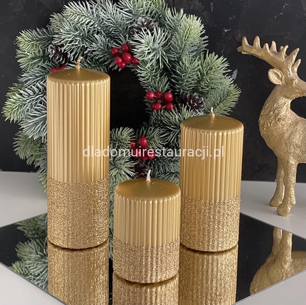 Świeca Ozdobna Pieńkowa Rylen Brokat Metalik 15cm Złoty