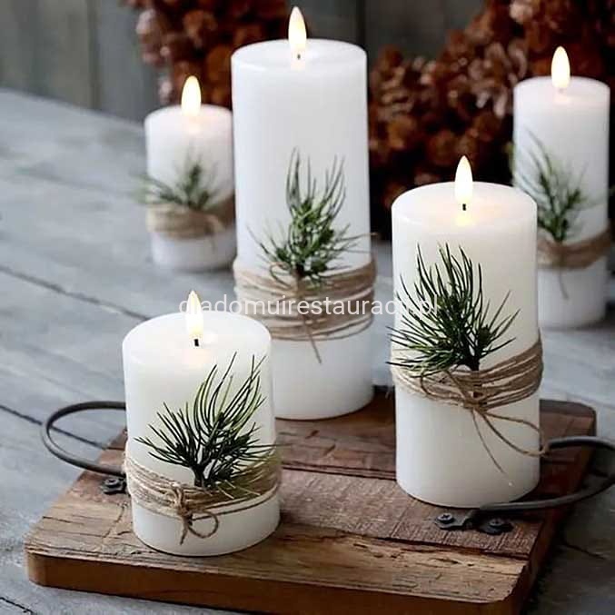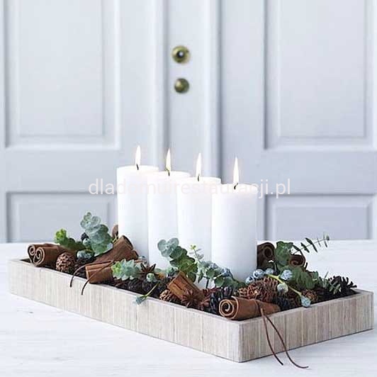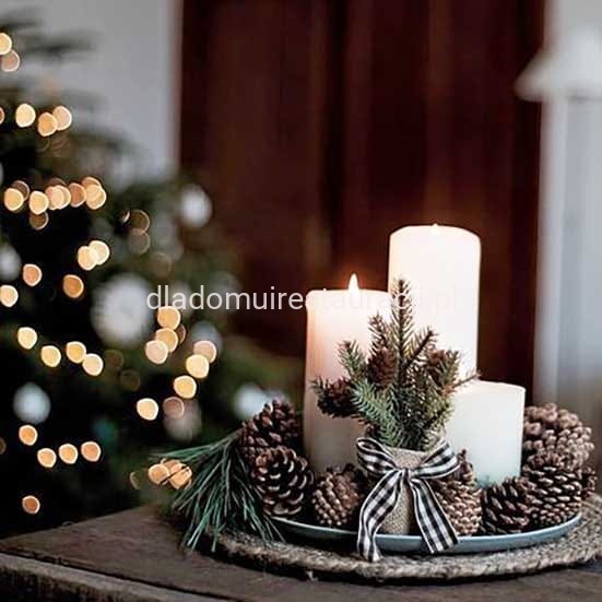 Świeca Zwyczajna świetnie sprawdzi się jako centralny element stroika okolicznościowego lub część większej dekoracji z kilkoma świecami w podobnym stylu. Można ustawić ją w eleganckim świeczniku, na podstawce lub w aranżacjach z zielonymi dodatkami, tworząc efektowny kontrast.