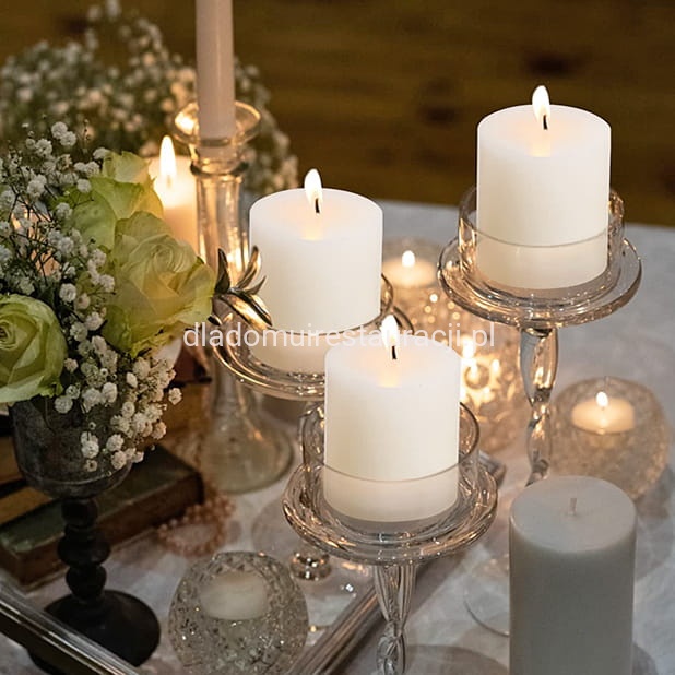 Świeca Ozdobna Pieńkowa Zwyczajna 12 cm Φ6cm Biała to klasyczna, codzienna świeca dekoracyjna o śnieżnobiałym kolorze. Jej prosty design sprawia, że pasuje zarówno do surowych, minimalistycznych aranżacji, jak i do eleganckich kompozycji w stylu glamour. W połączeniu z zielonymi dodatkami tworzy wyjątkowo harmonijną dekorację stołu. Idealna do codziennego użytku, ale także na wystawne przyjęcia organizowane w hotelach, restauracjach czy kawiarniach.