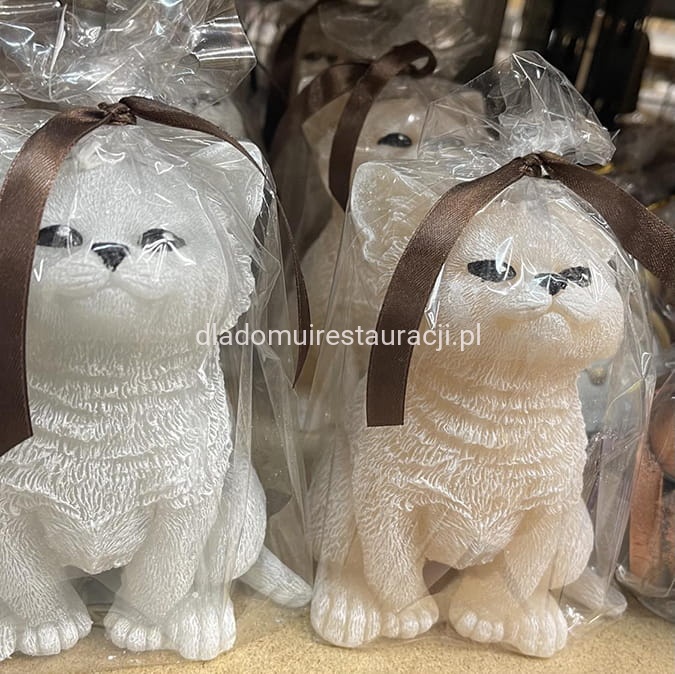 Świeca Parafinowa Animals Kot Szaryto ręcznie wykonana dekoracja w kształcie kota. Doskonale sprawdzi się jako element wystroju domu, restauracji czy kawiarni. Może być również oryginalnym pomysłem na prezent dla miłośników zwierząt i eleganckich dodatków.