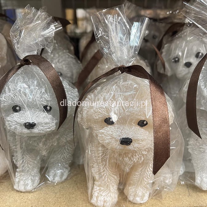 Świeca Parafinowa Animals Pies Pudel Szary to ręcznie wykonana dekoracja w kształcie psa. Sprawdzi się jako element wystroju wnętrz w domu, restauracji lub kawiarni. Może być także praktycznym i estetycznym pomysłem na prezent.
