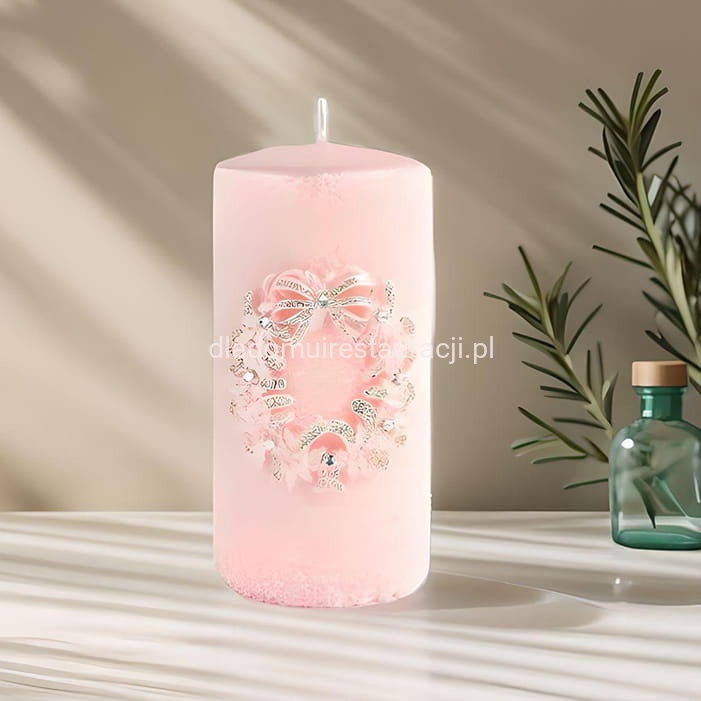 Świeca Pieńkowa Wianek Glamour Jasnoróżowy 14 cm