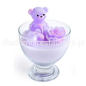Świeca Zapachowa Miś w Pucharku Fioletowy 15cm