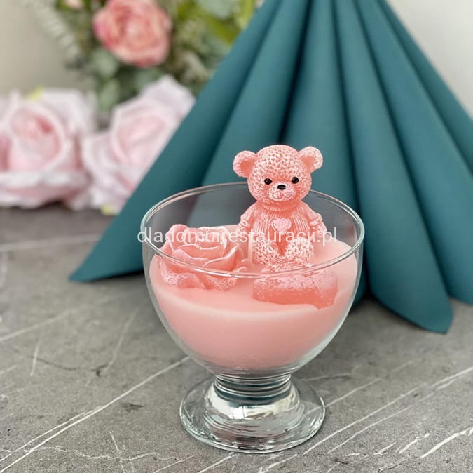 Świeca Zapachowa Miś w Pucharku Różowy 15cm