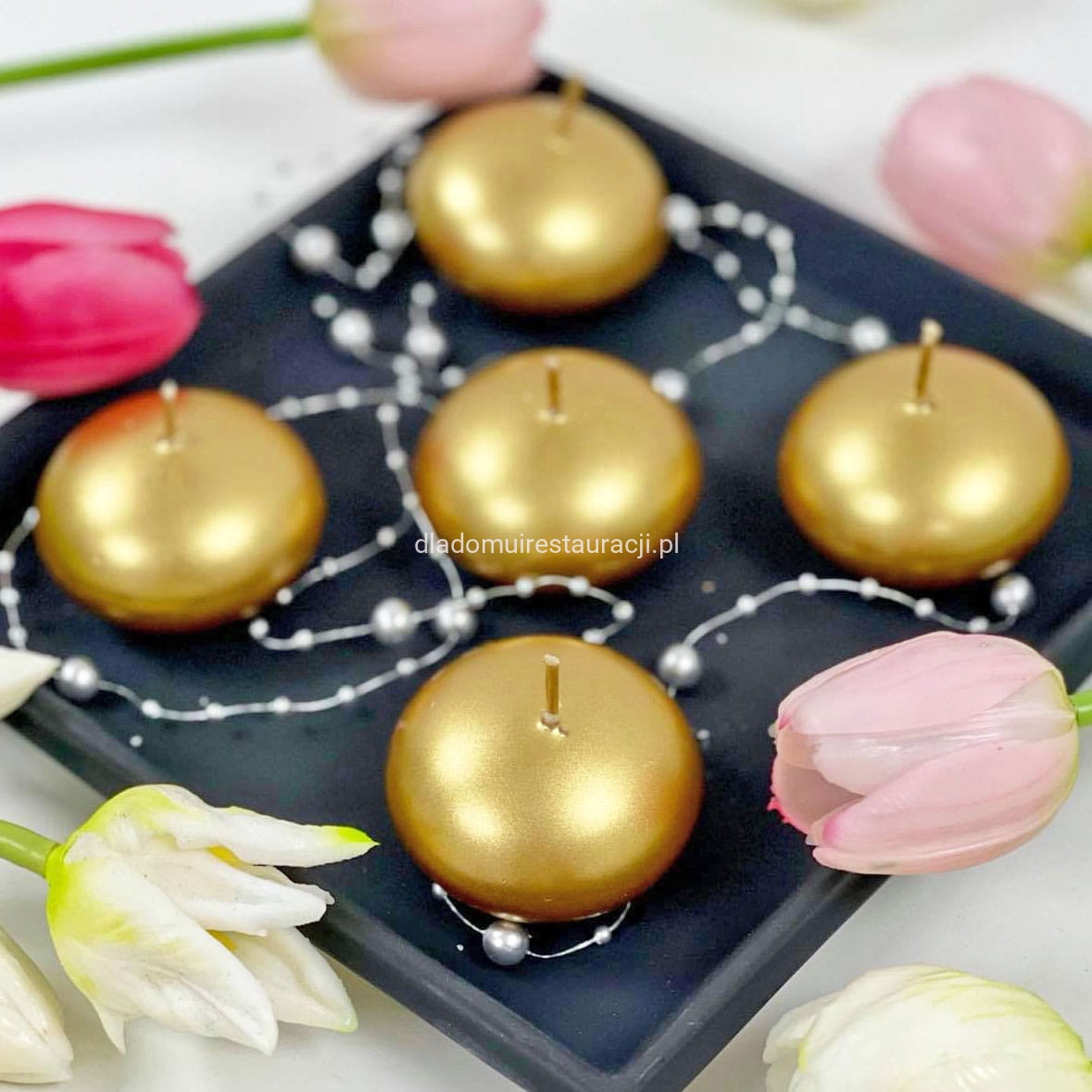 Świece Ozdobne Pływające Dyski Duże 5 szt. Złoty Metalik