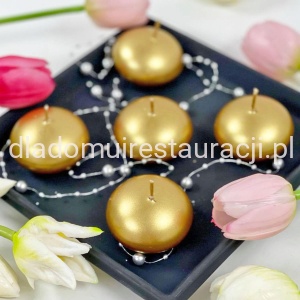 Świece Ozdobne Pływające Dyski Duże 5szt. Złoty Metalik 5,5cm to elegancki i efektowny element dekoracyjny, idealny do tworzenia nastrojowych aranżacji na wodzie. Dzięki klasycznej, gładkiej powierzchni i minimalistycznemu kształtowi pasują do każdego stylu – od nowoczesnego po rustykalny.