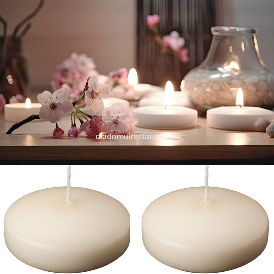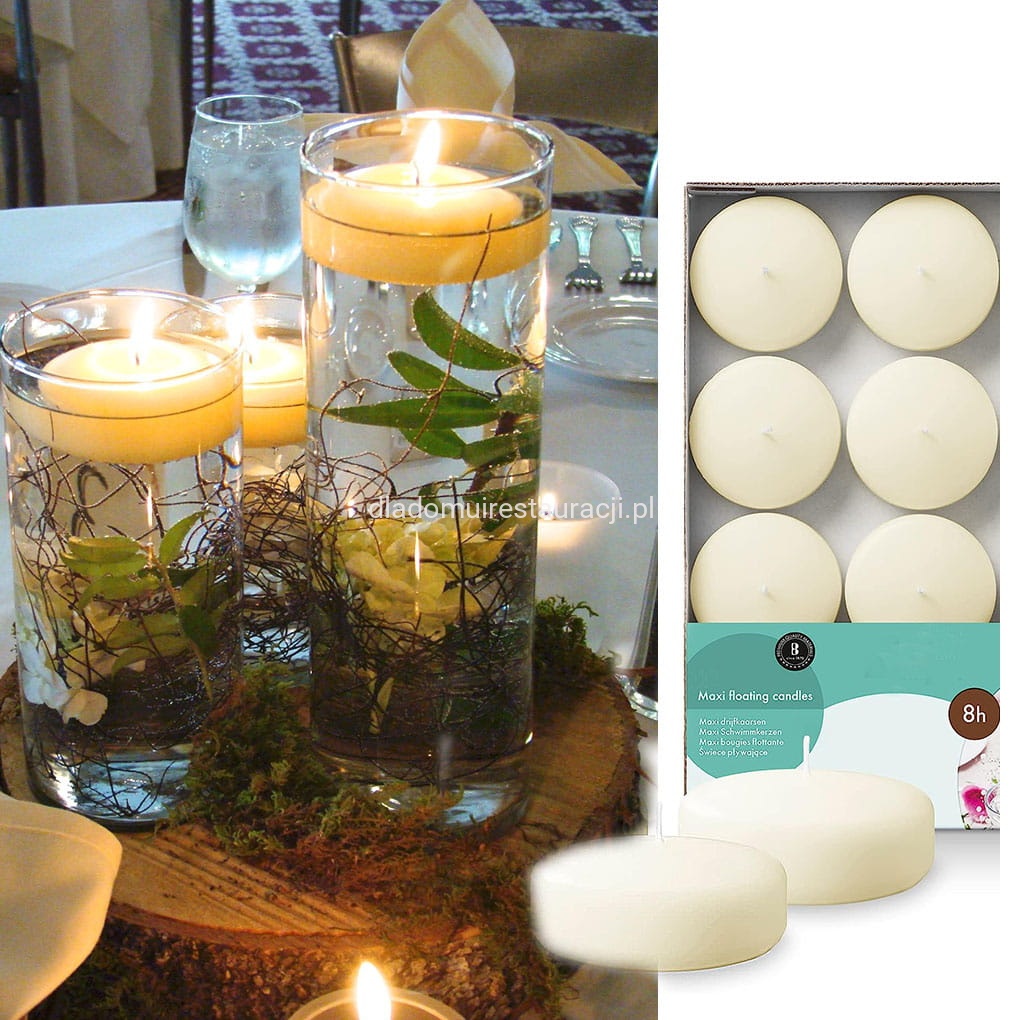Świeczki pływające dyski XXL można wykorzystać zarówno wewnątrz pomieszczeń, jak i na zewnątrz – np. w stawie, oczku wodnym, szklanym naczyniu czy dużym wazonie. W aranżacji warto połączyć je z ozdobnym żwirkiem, kamieniami, trawami, muszlami lub innymi elementami dekoracyjnymi. Po zapaleniu świec powstaje efekt świetlnej kompozycji unoszącej się na wodzie.