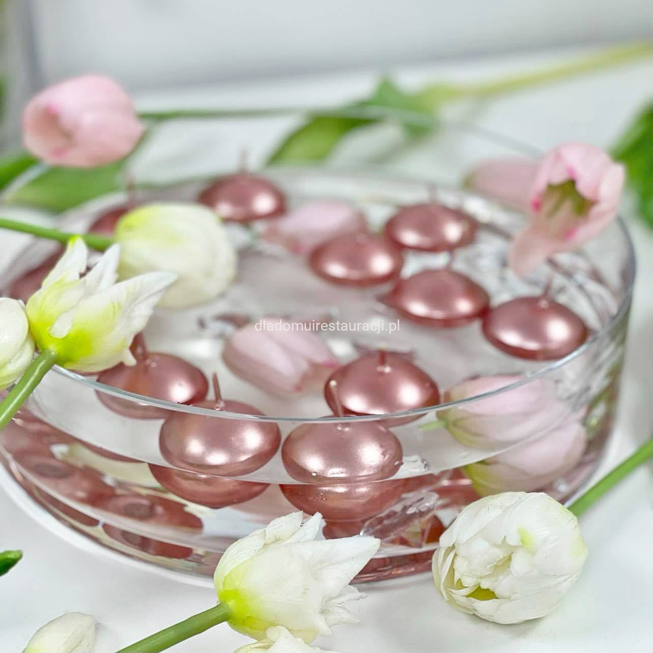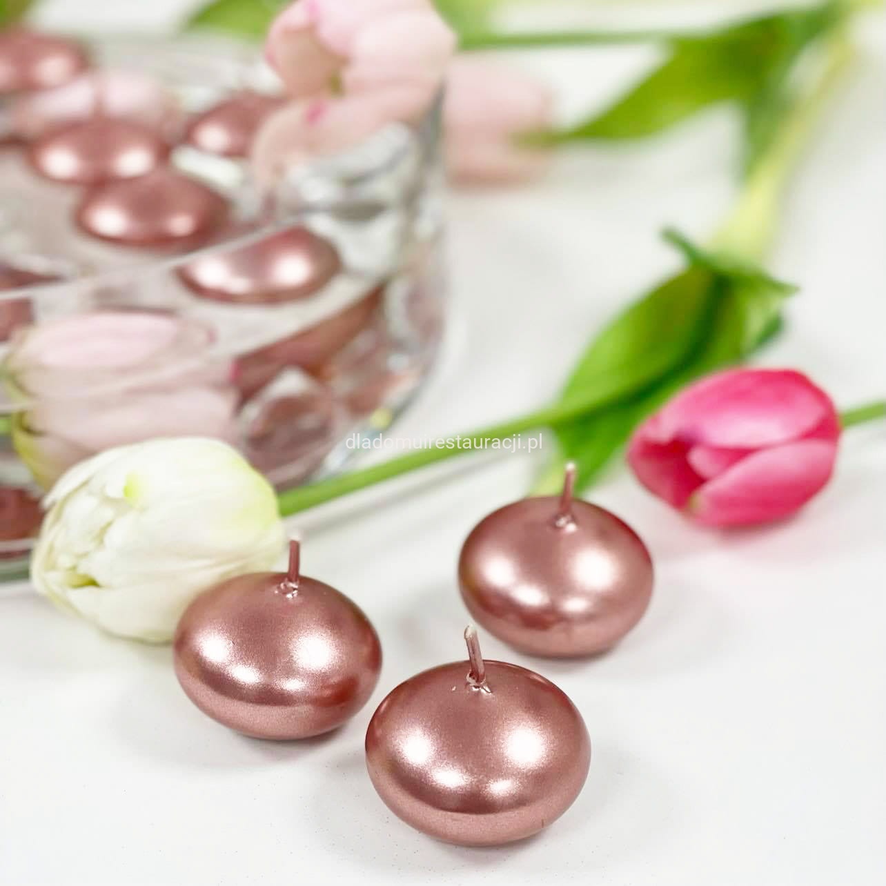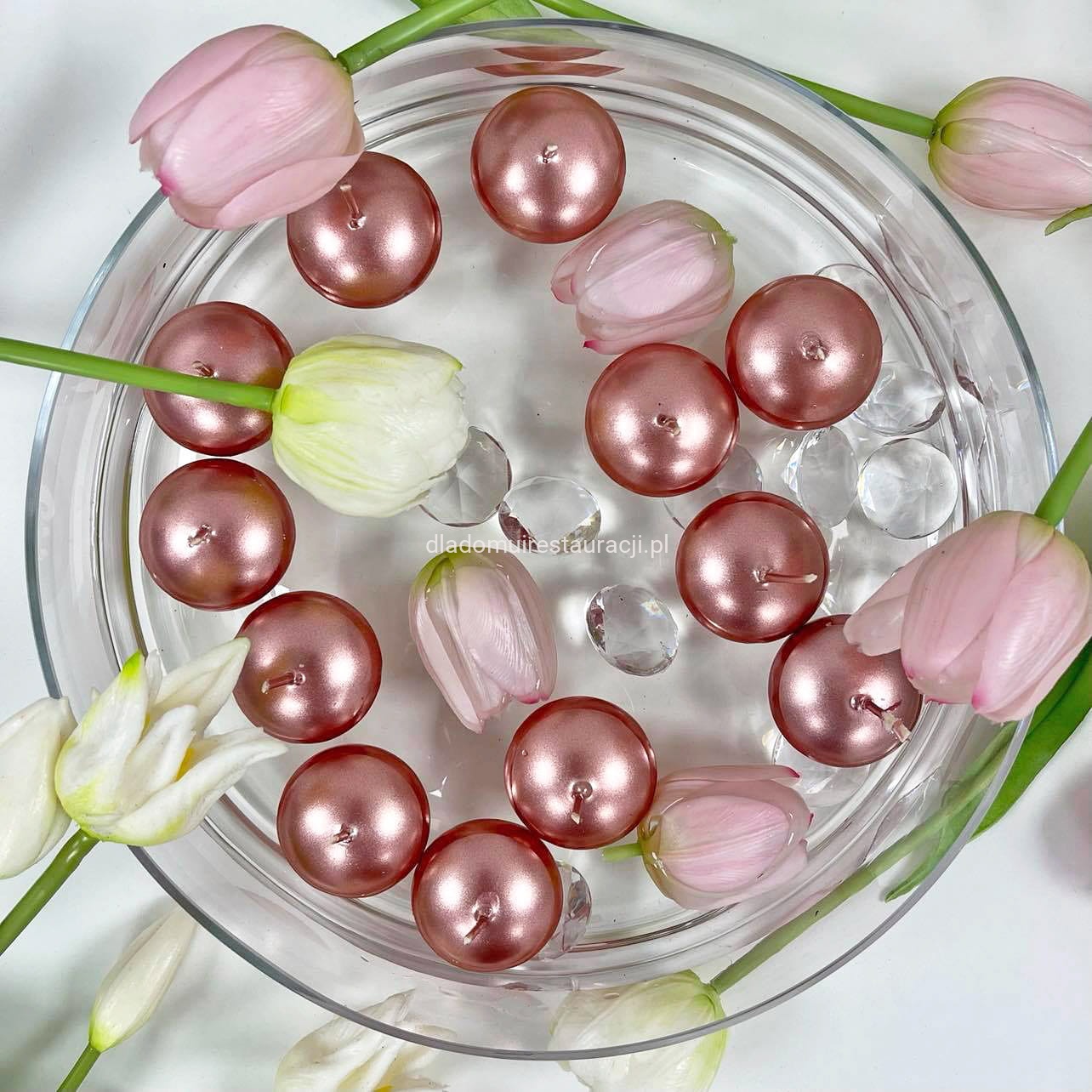 Świece Ozdobne Pływające Kulki 10szt. Różowe Złoto Metalik
