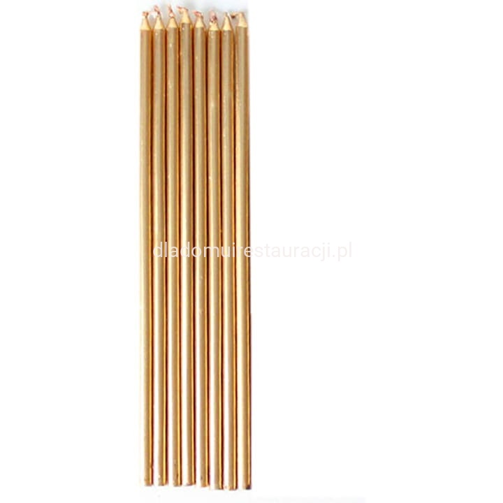 Świece Ozdobne Stroikowe Cienkie 23cm 8 szt. Złoty Metalik