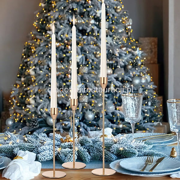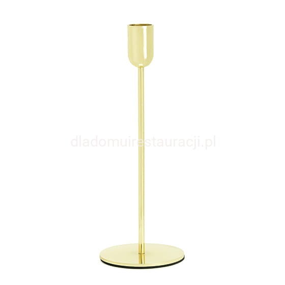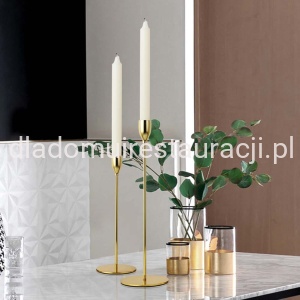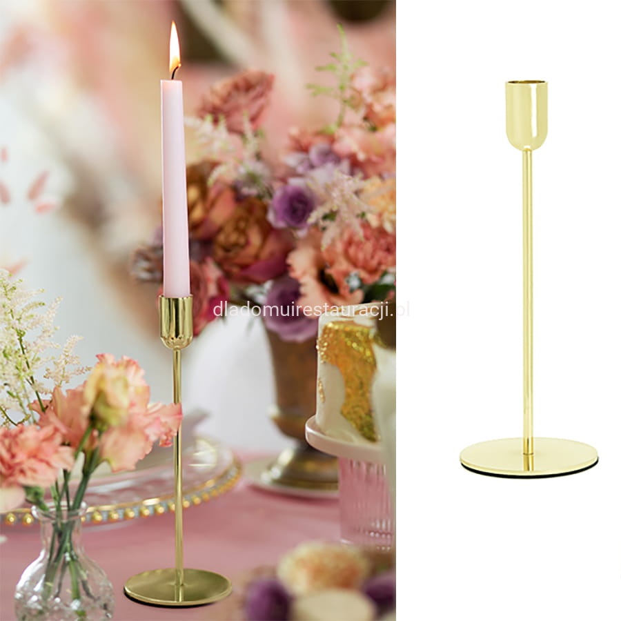 Świecznik metalowy Modern Gold wykonany z metalu i poryty złotym metalicznym kolorem. Sukły na długiej nóżcepięknie komponuje się z dekoracjami i podkreśla urok całej aranżacji pięknie odbijając światło. Znajdzie zastosowanie w restauracji i na każdym eleganckim stole. Wyróżnia się prostym, klasycznym stylem.