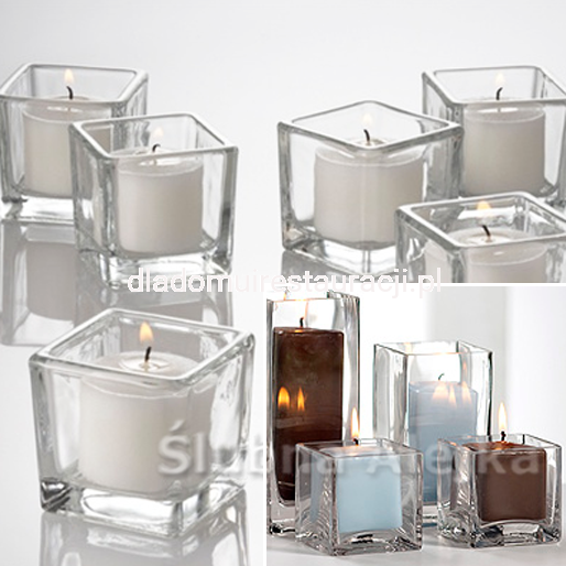 Świecznik Szklany Kostka 8 x 8 cm