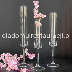 Świecznik szklanyna na nodze to elegancki i bardzo praktyczny w zastosowaniu element dekoracyjny. Cylindryczna czasza świecznika została osadzona na długiej, smukłej nóżce. Restauratorzy wykorzystują świeczniki szklane na nodze jako lampiony wzdłuż całego stołu. Można zakupić je w hurtowych ilościach i ozdobić nimi całą restaurację, kawiarnię lub hotelowe lobby. Świeczniki szklane na nodze wykonane są z gładkiego szkła