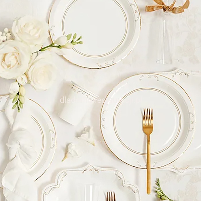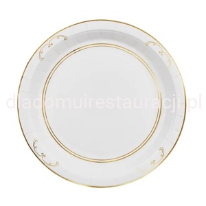 Talerzyki Białe ze Złotym Ornamentem Ślub Komunia 23 cm 6szt.