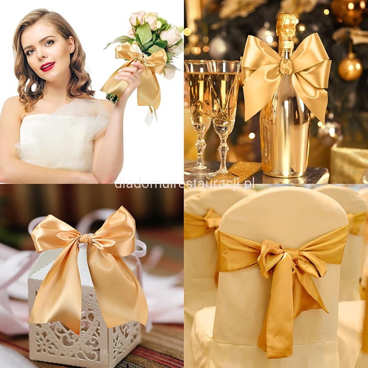 Tasiemka Satynowa Złota do Pakowania Prezentów 10 cm