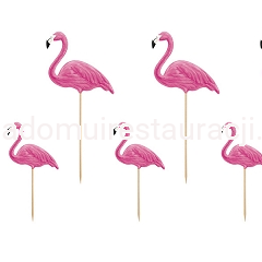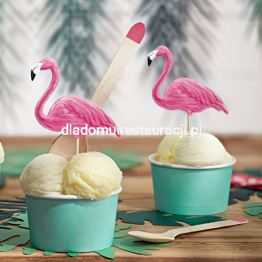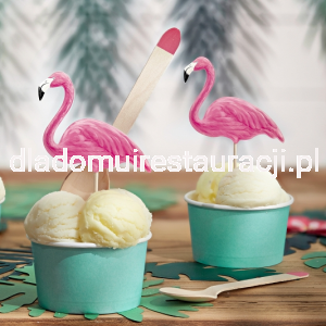 Urocze toppery na tort w kształcie flamingów. Pięknie ozdobią ciasto urodzinowe, wprowadzą klimat hawajski.