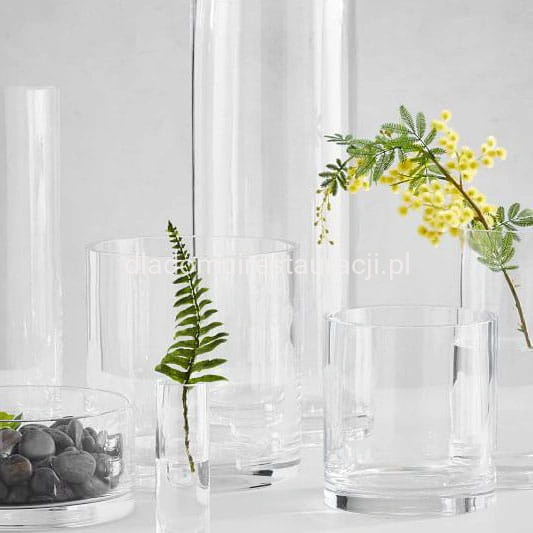 Wazon szklany cylinder jest wdzięcznym dodatkiem do dekoracji wnętrz w branży HoReCa. Długie kwiaty: róże, lilie, czy goździki, pięknie prezentują się w przezroczystym naczyniu nawet pojedynczo. Wnętrze wazonu można wypełnić również kolorowym piaskiem lub żwirem ozdobnym, tworząc warstwową dekorację stołów i komód.