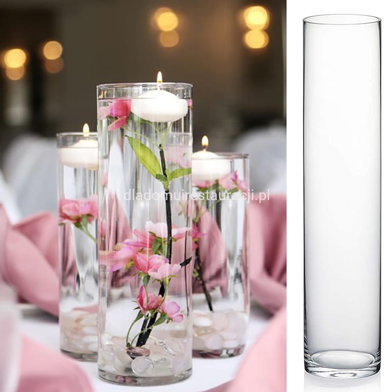 Wazon szklany cylinder znakomicie sprawdza się jako tradycyjny wazon lub jako świecznik. Kwiat, którego wysokość równa się wysokości wazonu można w całości włożyć do rurki, dopełniając całość wodą tylko w połowie lub 1/4 wysokości. Jako świecznik pomieści świeczkę typu tealight lub świecę pieńkową o średnicy pasującej do danego rodzaju wazonu.