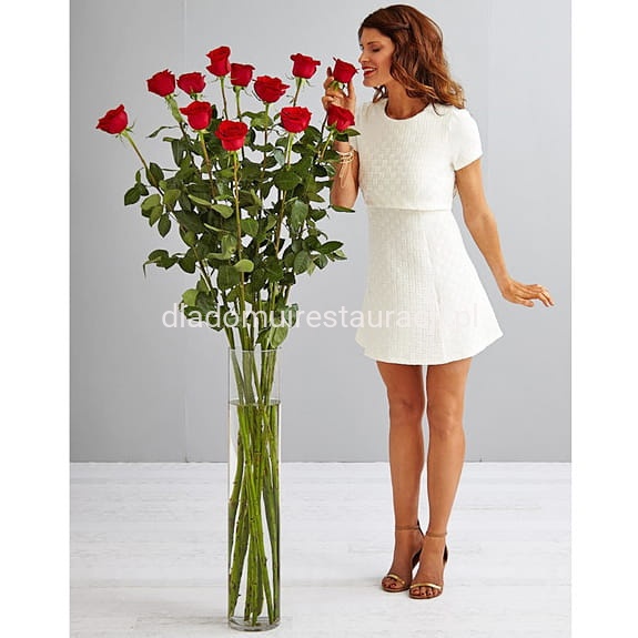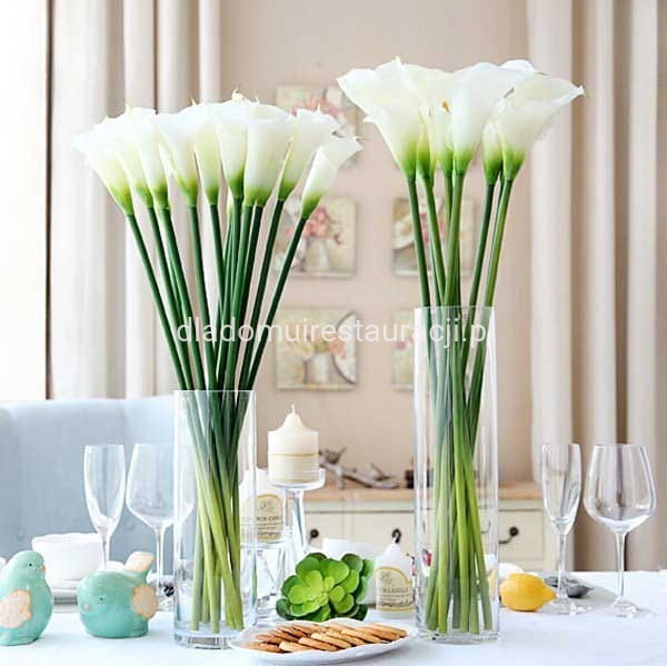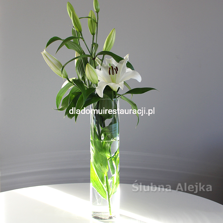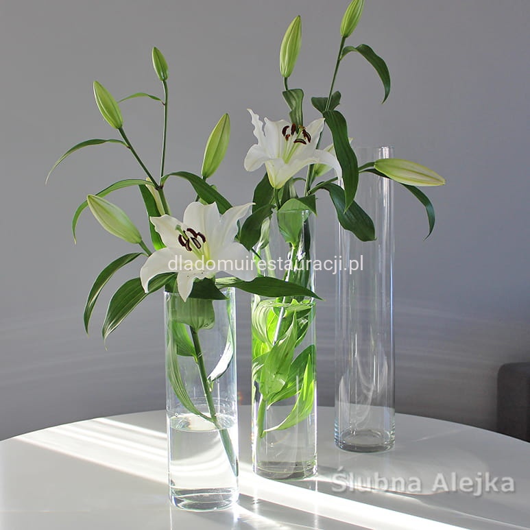 Szklany cylinder doskonale eksponuje kwiaty o długich łodygach, takie jak: