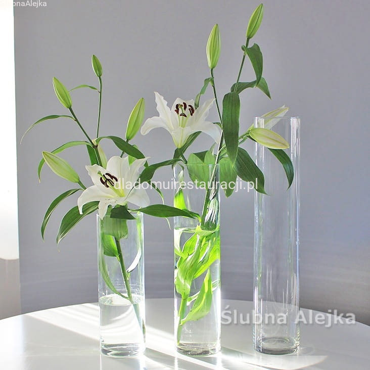Wazony szklane cylindryczne wyróżniają się prostotą – nie posiadają zdobień ani dodatkowych elementów dekoracyjnych. Transparentna forma skupia uwagę na zawartości, co sprawia, że idealnie nadają się do ekspozycji pojedynczych kwiatów lub kreatywnych kompozycji florystycznych.