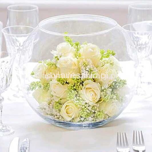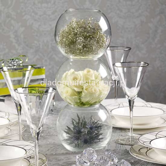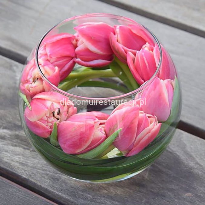 Kwiaty i kompozycje florystyczne: Wazon kula ⌀18 cm idealnie nadaje się do tworzenia kompozycji z niewielkich bukietów, pojedynczych kwiatów, traw ozdobnych lub gałązek. Przezroczyste szkło pozwala eksponować także dodatki znajdujące się wewnątrz – np. kamienie, żwirek, mech.