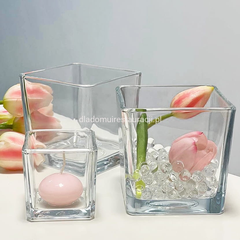 Wazon szklany kwadrat jest wyjątkowo wszechstronny i łatwy do wykorzystania w różnych aranżacjach. Dzięki przezroczystemu szkłu, całą uwagę przyciągają dodatki umieszczone wewnątrz. Wazon świetnie komponuje się z kompozycjami florystycznymi, dekoracjami sezonowymi czy kamieniami dekoracyjnymi. Może służyć również jako podstawa do stworzenia stroików, świeczników czy innych ozdób stołowych, co czyni go idealnym elementem dekoracyjnym na stoły i przestrzenie eventowe.