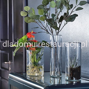 Wazon szklany cylinder w zestawie wykorzystany jako wazon pomieści bukiety kwiatów w zależności od średnicy i wysokości każdego z nich. Nie musi to być jednak nudna aranżacja, ponieważ zestaw różnej wysokości wazonów urozmaica całą przestrzeń wokół siebie. W przypadku chęci posiadania świecznika zamiast wazonu, z powodzeniem umieścimy w czaszy cylindrycznego wazonu świecę pieńkową na bazie grysiku lub piasku dekoracyjnego. Cały zestaw wazonów szklanych cylindrów tworzy wyjątkową atmosferę w czasie każdego przyjęcia.
