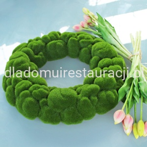 Wianek dekoracyjny kamienie z mchu wykonany precyzyjnie ze sztucznego tworzywa. Swoją popularność zyskał jako ozdoba okien w domowych czterech ścianach, jednak ze względu na swój sielski charakter wykorzystuje się go także jako ozdobna kościoła lub dekoracja weselna. Można zawiesić go na tasiemce i podwiesić zarówno w oknie sali restauracyjnej, jak i na ścianie, czy drzwiach – w wejściu do domu weselnego. W pozycji poziomej spełnia rolę jako stroik wokół lampionu lub świecznika.