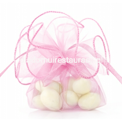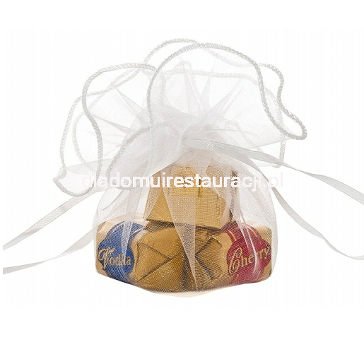 Na talerzu lub przy wejściu: Woreczek z zawartością – np. migdałami w lukrze, czekoladkami lub herbatką – można położyć przy nakryciu, wręczyć z koszyka przy wejściu lub ułożyć na wspólnej paterze przy Candy Barze.