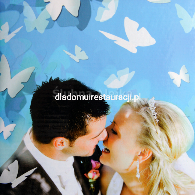 Delikatny efekt wizualny – unoszące się motylki tworzą bajkową i romantyczną atmosferę.