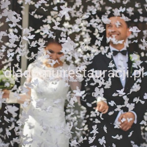 Białe motylki unoszące się nad gośćmi to niezapomniany akcent, który sprawi, że Twoje wydarzenie będzie jeszcze bardziej magiczne.