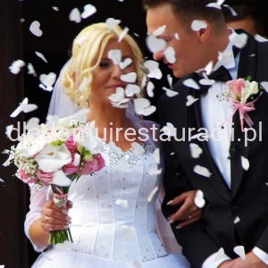 Subtelny i elegancki efekt – białe serca unoszące się w powietrzu podkreślą uroczysty charakter wydarzenia.
