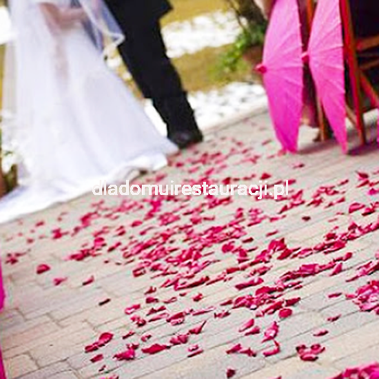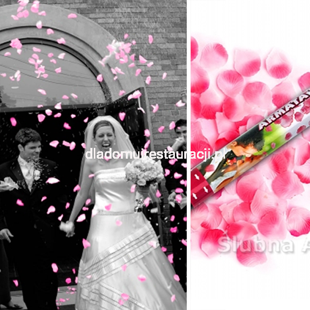 Różowe płatki unoszące się nad gośćmi to gwarancja wyjątkowych wspomnień i pięknych zdjęć z uroczystości.